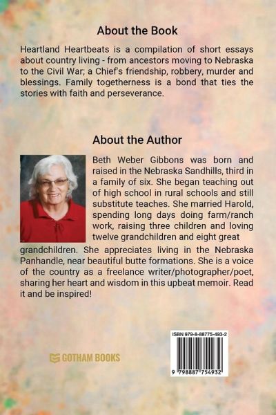 Heartland Heartbeats is a compilation of short essays about country living - from ancestors moving to Nebraska to the Civil War; a Chief's friendship, robbery, murder and blessings. Family togetherness is a bond that ties the stories with faith and perseverance.