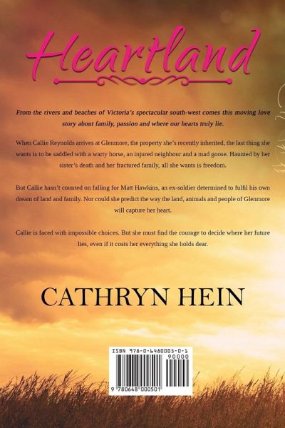 From the rivers and beaches of Victoria's spectacular south-west comes this moving love story about family, passion and where our hearts truly lie. When Callie Reynolds arrives at Glenmore, the property she's recently inherited, the last thing she wants is to be saddled with a warty horse, an injured neighbour and a mad goose. Haunted by her sister's death and her fractured family, all she wants is freedom. But Callie hasn't counted on falling for Matt Hawkins, an ex-soldier determined to fulfil his own dream of land and family. Nor could she predict the way the land, animals and people of Glenmore will capture her heart. Callie is faced with impossible choices. But she must find the courage to decide where her future lies, even if it costs her everything she holds dear.