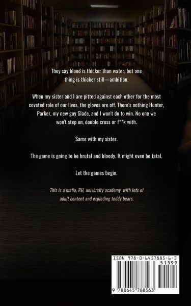 They say blood is thicker than water, but one thing is thicker still-ambition. When my sister and I are pitted against each other for the most coveted role of our lives, the gloves are off. There's nothing Hunter, Parker, my new guy Slade, and I won't do to win. No one we won't step on, double cross or f**k with. Same with my sister. The game is going to be brutal and bloody. It might even be fatal. Let the games begin. **This is a mafia, RH academy with lots of adult content and a pair of evil twins. Please note TWs.**