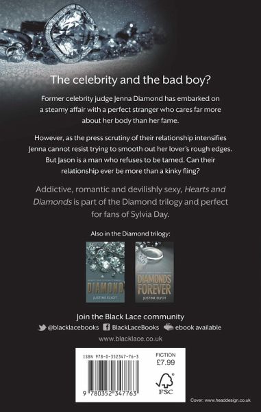 The celebrity and the bad boy? Former celebrity judge Jenna Diamond has embarked on a steamy affair with a perfect stranger who cares far more about her body than her fame. However as the press scrutiny of their relationship intensifies Jenna cannot resist trying to smooth out her lover's rough edges. But Jason is a man who refuses to be tamed. Can their relationship ever be more than a kinky fling? Addictive romantic and devilishly sexy Hearts and Diamonds is part of the Diamond trilogy and perfect for fans of Sylvia Day.