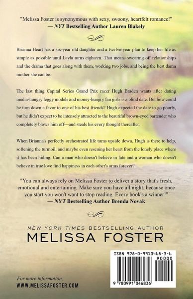 Discover the magic of New York Times bestseller Melissa Foster's writing, and see why millions of readers have fallen in love with the Bradens. In HEARTS AT PLAY... Brianna Heart has a six-year old daughter and a twelve-year plan to keep her life as simple as possible until Layla turns eighteen. That means swearing off relationships and the drama that goes along with them, working two jobs, and being the best damn mother she can be. The last thing Capital Series Grand Prix racer Hugh Braden wants after dating media-hungry leggy models and money-hungry fan girls is a blind date. But how could he turn down a favor to one of his best friends? Hugh expected the date to go poorly, but he didn't expect to be intensely attracted to the beautiful brown-eyed bartender who completely blows him off--and steals his every thought thereafter. When Brianna's perfectly orchestrated life turns upside down, Hugh is there to help, softening the turmoil, and maybe even rescuing her heart from the lonely place where it has been hiding. Can a man who doesn't believe in fate and a woman who doesn't believe in true love find happiness in each other's arms forever? WANT MORE BRADENS? All Braden books can be read as stand-alone novels or as part of the series: THE BRADENS (Weston, CO) Lovers at Heart (Treat & Max) Destined for Love (Rex & Jade) Friendship on Fire (Josh & Riley) Sea of Love (Dane & Lacy) Bursting with Love (Savannah & Jack) Hearts at Play (Hugh & Bree)