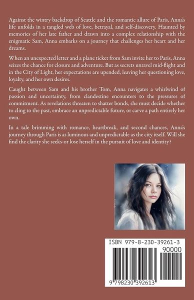 Against the wintry backdrop of Seattle and the romantic allure of Paris, Anna's life unfolds in a tangled web of love, betrayal, and self-discovery. Haunted by memories of her late father and drawn into a complex relationship with the enigmatic Sam, Anna embarks on a journey that challenges her heart and her dreams. When an unexpected letter and a plane ticket from Sam invite her to Paris, Anna seizes the chance for closure and adventure. But as secrets unravel mid-flight and in the City of Light, her expectations are upended, leaving her questioning love, loyalty, and her own desires. Caught between Sam and his brother Tom, Anna navigates a whirlwind of passion and uncertainty, from clandestine encounters to the pressures of commitment. As revelations threaten to shatter bonds, she must decide whether to cling to the past, embrace an unpredictable future, or carve a path entirely her own. In a tale brimming with romance, heartbreak, and second chances, Anna's journey through Paris is as luminous and unpredictable as the city itself. Will she find the clarity she seeks-or lose herself in the pursuit of love and identity?