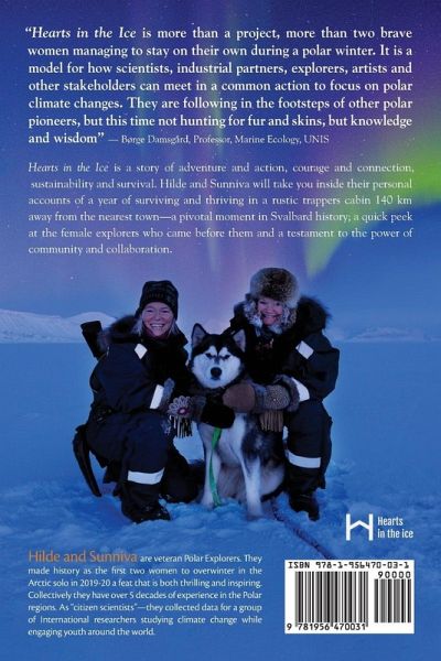 Hearts in the Ice is a story of adventure and action, courage and connection, sustainability and survival. Hilde and Sunniva will take you inside their personal accounts of a year of surviving and thriving in a rustic trappers cabin 140 km away from the nearest town-a pivotal moment in Svalbard history; a quick peek at the female explorers who came before them and a testament to the power of community and collaboration.