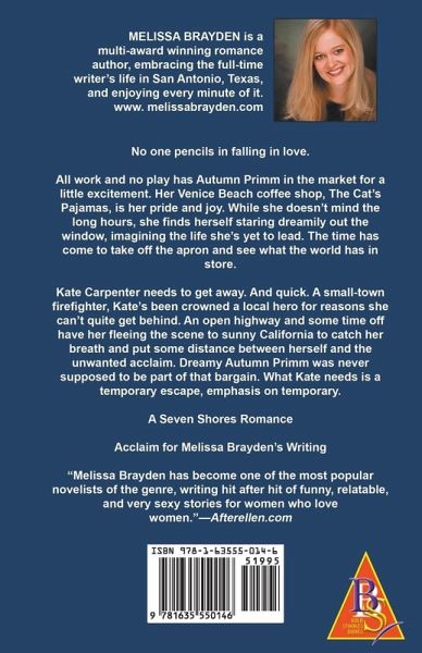 No one pencils in falling in love. All work and no play has Autumn Primm in the market for a little excitement. Her Venice Beach coffee shop, The Cat’s Pajamas, is her pride and joy. While she doesn’t mind the long hours, she finds herself staring dreamily out the window, imagining the life she’s yet to lead. The time has come to take off the apron and see what the world has in store. Kate Carpenter needs to get away. And quick. A small-town firefighter, Kate’s been crowned a local hero for reasons she can’t quite get behind. An open highway and some time off have her fleeing the scene to sunny California to catch her breath and put some distance between herself and the unwanted acclaim. Dreamy Autumn Primm was never supposed to be part of that bargain. What Kate needs is a temporary escape, emphasis on temporary.