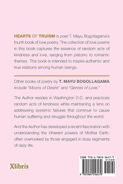 Hearts of Truism is poet T. Mayu Bogollagama's fourth book of love poetry. The collection of love poems in this book captures the essence of random acts of kindness and love, ranging from platonic to romantic themes. This book is intended to inspire authentic and true relations among human beings.