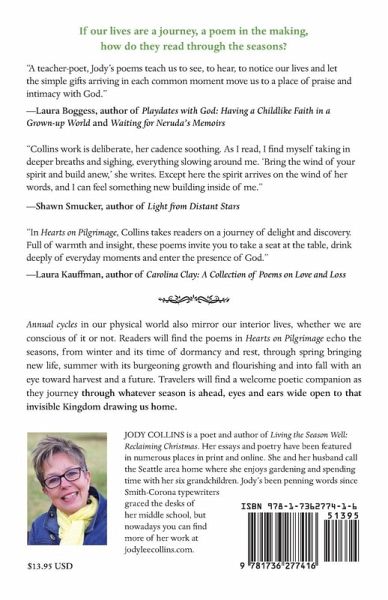 "I've no chisel but this pen chipping at paper like stone" begins Hearts on Pilgrimage, but what a chisel author Jody L. Collins wields in this exquisitely sculpted collection of quiet poems that bring comfort, contemplation, and gratitude in difficult times. Her poetry echoes the seasons, from winter's dormancy and spring's new life to summer's exuberant growth and the fall harvest, looking through the lens of a physical world that also mirrors our interior lives. Whether it's picking autumn raspberries, listening to a violent thunderstorm, witnessing the first flight of a chickadee, or contemplating the memory of an absent father, Collins invites us to slow down and notice the extraordinary everyday moments in our journeys with nature, Christianity, spirituality, and family.