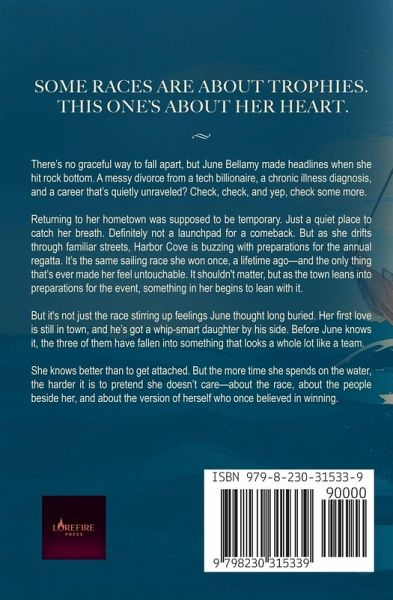 There's no graceful way to fall apart, but June Bellamy made headlines when she hit rock bottom. A messy divorce from a tech billionaire, a chronic illness diagnosis, and a career that's quietly unraveled? Check, check, and yep, check some more. Returning to her hometown was supposed to be temporary. Just a quiet place to catch her breath. Definitely not a launchpad for a comeback. But as she drifts through familiar streets, Harbor Cove is buzzing with preparations for the annual regatta. It's the same sailing race she won once, a lifetime ago-and the only thing that's ever made her feel untouchable. It shouldn't matter, but as the town leans into preparations for the event, something in her begins to lean with it. But it's not just the race that's stirring up feelings June had thought long buried. Her first love is still in town, and he's got a whip-smart daughter by his side. Before she knows it, the three of them have fallen into something that looks a whole lot like a team. She knows better than to get attached. But the more time she spends on the water, the harder it is to pretend she doesn't care-about the race, about the people beside her, and about the version of herself who once believed in winning. Some races are about trophies. This one's about her heart.