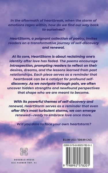 In the aftermath of heartbreak, when the storm of emotions rages within, how do we find our way back to ourselves? HeartStorm, a poignant collection of poetry, invites readers on a transformative journey of self-discovery and renewal. At its core, HeartStorm is about reclaiming one's identity after love has faded. The poems encourage introspection, prompting readers to reflect on their desires, dreams, and the lessons learned from past relationships. Each piece serves as a reminder that heartbreak can be a catalyst for profound self-discovery. As we navigate through pain, we often uncover hidden strengths and newfound perspectives that shape who we are meant to become. With its powerful themes of self-discovery and renewal, HeartStorm serves as a reminder that even after life's most turbulent storms, we can emerge renewed-ready to embrace love once more. Will you dare to face your own heartstorm?