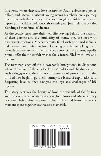 In a world where duty and love intertwine, Arun, a dedicated police officer, and Meera, a vibrant young woman, embark on a journey that transcends the ordinary. Their wedding day unfolds like a grand tapestry of tradition and honor, showcasing not just their love but the blending of their families' dreams. As the couple steps into their new life, leaving behind the warmth of their parents and the familiarity of home, they are met with bittersweet emotions. Meera's parents, filled with pride and sadness, bid farewell to their daughter, knowing she is embarking on a beautiful adventure with the man they adore. Arun's parents, equally proud, offer their heartfelt wishes for a future filled with love and happiness. The newlyweds set off for a two-week honeymoon in Singapore, where the allure of the city beckons. Amidst candlelit dinners and enchanting gardens, they discover the essence of partnership and the thrill of new beginnings. Their journey is a blend of exploration and deepening love, as they navigate the joys and challenges of life together. This story captures the beauty of love, the warmth of family ties, and the excitement of starting anew. Join Arun and Meera as they celebrate their union, explore a vibrant city, and learn that every moment spent together is a treasure to cherish.