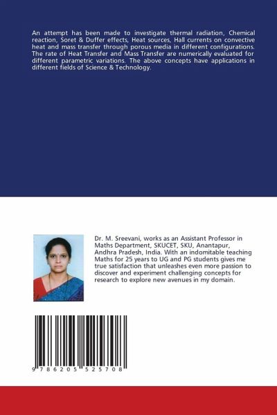 An attempt has been made to investigate thermal radiation, Chemical reaction, Soret & Duffer effects, Heat sources, Hall currents on convective heat and mass transfer through porous media in different configurations. The rate of Heat Transfer and Mass Transfer are numerically evaluated for different parametric variations. The above concepts have applications in different fields of Science & Technology.