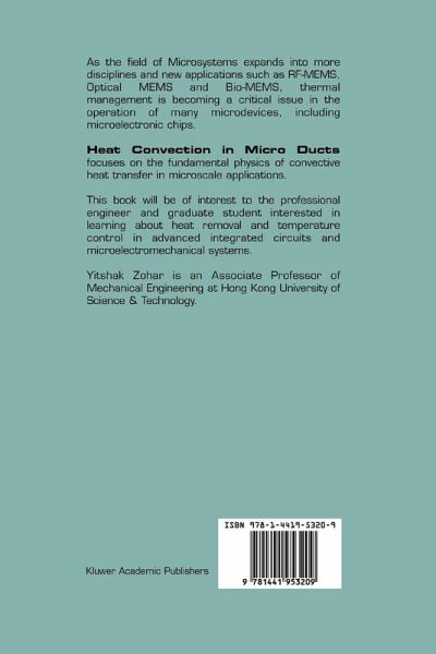 Heat Convection in Micro Ducts focuses on the fundamental physics of convective heat transfer in microscale and specific applications such as: microchannel heat sinks, micro heat pipes, microcoolers and micro capillary pumped loops.