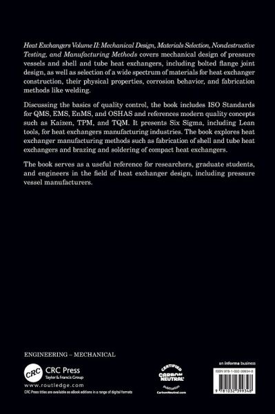 Heat Exchangers: Mechanical Design, Materials Selection, Nondestructive Testing, and Manufacturing Methods covers a wide spectrum of materials for heat exchanger construction, their physical properties, corrosion behavior, and fabrication methods like welding.