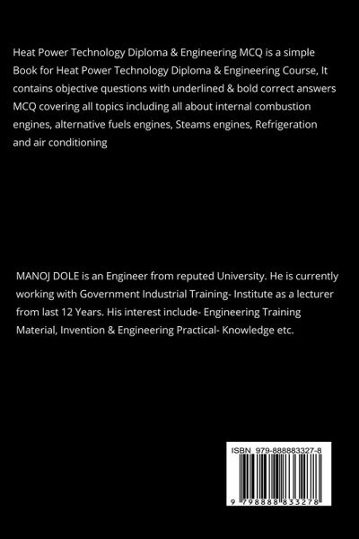 Heat Power Technology Diploma & Engineering MCQ is a simple Book for Heat Power Technology Diploma & Engineering Course, It contains objective questions with underlined & bold correct answers MCQ covering all topics including all about internal combustion engines, alternative fuels engines, Steams engines, Refrigeration and air conditioning Engg, Pollution Fluid Mechanism control of industries and lots more.
