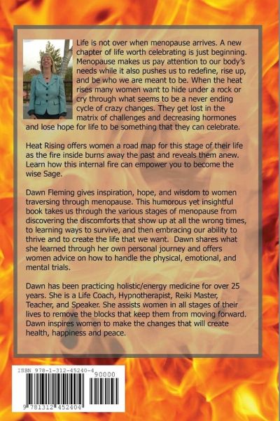 Life is not over when menopause arrives. A new chapter of life worth celebrating is just beginning. Menopause makes us pay attention to our body's needs while it also pushes us to redefine, rise up, and be who we are meant to be. When the heat rises many women want to hide under a rock or cry through what seems to be a never ending cycle of crazy changes. They get lost in the matrix of challenges and decreasing hormones and lose hope for life to be something that they can celebrate. Heat Rising offers women a road map for this stage of their life as the fire inside burns away the past and reveals them anew. Learn how this internal fire can empower you to become the wise Sage.