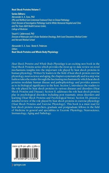 Heat Shock Proteins and Whole Body Physiology is an exciting new book in the Heat Shock Proteins series which provides the most up-to-date review on novel mechanisms insights into the important role played by heat shock proteins in human physiology. Written by leaders in the field of heat shock protein exercise physiology, neuroscience and aging, the chapters systematically and in a step wise fashion takes the reader through the fascinating mechanisms by which heat shock proteins modulate human disease and pathophysiology and provides answers as to its biological significance to the host. Section I, introduces the readers to the role played by heat shock proteins in various diseases and disorders (Heat Shock Proteins and Disease). Section II, addresses the role heat shock proteins play in psychological disorders including post traumatic stress disorders and learning (Heat Shock Proteins and Psychological Stress). Section III, present a detailed review of the role played by heat shock proteins in exercise physiology (Heat Shock Proteins and Exercise Physiology). This book is a must read for heat shock protein researchers, graduate and postgraduate fellows in the field of Medicine in general and specialities in Excersie Physiology, Neuroscience, Immunology, Aging and Pathology.