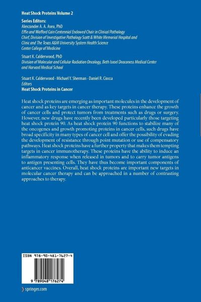 Heat shock proteins are emerging as important molecules in the development of cancer and as key targets in cancer therapy. These proteins enhance the growth of cancer cells and protect tumors from treatments such as drugs or surgery. However, new drugs have recently been developed particularly those targeting heat shock protein 90. As heat shock protein 90 functions to stabilize many of the oncogenes and growth promoting proteins in cancer cells, such drugs have broad specificity in many types of cancer cell and offer the possibility of evading the development of resistance through point mutation or use of compensatory pathways. Heat shock proteins have a further property that makes them tempting targets in cancer immunotherapy. These proteins have the ability to induce an inflammatory response when released in tumors and to carry tumor antigens to antigen presenting cells. They have thus become important components of anticancer vaccines. Overall, heat shock proteins are important new targets in molecular cancer therapy and can be approached in a number of contrasting approaches to therapy.