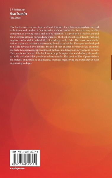 The book covers various topics of heat transfer. It explains and analyzes several techniques and modes of heat transfer such as conduction in stationary media, convection in moving media and also by radiation. It is primarily a text book useful for undergraduate and postgraduate students. The book should also interest practicing engineers who wish to refresh their knowledge in the field. The book presents the various topics in a systematic way starting from first principles. The topics are developed to a fairly advanced level towards the end of each chapter. Several worked examples illustrate the engineering applications of the basic modeling tools developed in the text. The exercises at the end of the book are arranged chapter wise and challenge the reader to tackle typical real-life problems in heat transfer. This book will be of potential use for students of mechanical engineering, chemical engineering and metallurgy in most engineering colleges.