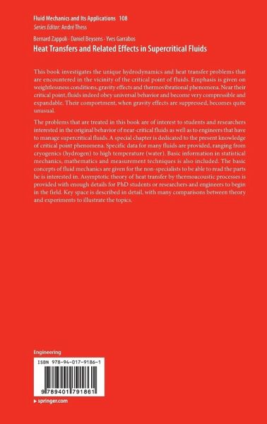 The problems that are treated in this book are of interest to students and researchers interested in the original behavior of near-critical fluids as well as to engineers that have to manage supercritical fluids. A special chapter is dedicated to the present knowledge of critical point phenomena. Specific data for many fluids are provided, ranging from cryogenics (hydrogen) to high temperature (water). Basic information in statistical mechanics, mathematics and measurement techniques is also included. The basic concepts of fluid mechanics are given for the non-specialists to be able to read the parts he is interested in. Asymptotic theory of heat transfer by thermoacoustic processes is provided with enough details for PhD students or researchers and engineers to begin in the field. Key spaces are described in details, with many comparisons between theory and experiments to illustrate the topics.