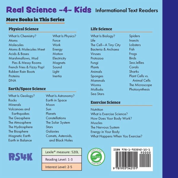 In the Heat leveled reader, fundamental science facts in chemistry are explained through simply written text and colorful, fun illustrations. Young readers discover that heat is a form of energy. (The terms energy, work, force, and speed are defined). The movement of atoms and molecules creates heat energy, and the faster atoms and molecules move, the more heat is released. (Atoms and molecules are described.) Ice cubes are cold because the water molecules are moving slowly. As the molecules move faster, the water gets warmer and the ice melts. When molecules move even faster, the water becomes steam. The faster molecules move, the more energy they have. Humans and animals need heat energy to stay alive. A pronunciation guide of scientific terms is included. 24 pages filled with engaging, colorful illustrations. Reading Level 1-3, Interest Level 2-5.