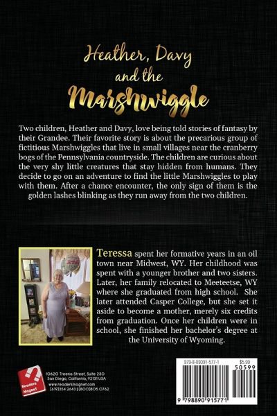 Two children, Heather and Davy, love being told stories of fantasy by their Grandee. Their favorite story is about the precarious group of fictitious Marshwiggles that live in small villages near the cranberry bogs of the Pennsylvania countryside. The children are curious about the very shy little creatures that stay hidden from humans. They decide to go on an adventure to find the little Marshwiggles to play with them. After a chance encounter, the only sign of them is the golden lashes blinking as they run away from the two children.