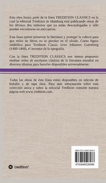 Esta obra (libro de tapa dura) forma parte de la línea TREDITION CLASSICS en la cual la editorial tredition de Hamburgo está publicando obras de los últimos dos milenios que ya están descatalogadas y sólo pueden encontrarse en anticuarios. Esta línea quiere preservar la literatura y proteger la cultura para que miles de libros no se pierdan en el olvido. Con la línea TREDITION CLASSICS nos hemos propuesto reeditar miles de escritores clásicos de la literatura mundial en diversos idiomas para hacerles disponibles universalmente.
