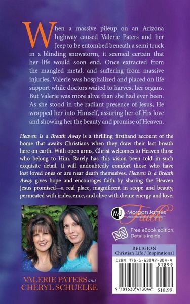 In March 2000, Valerie Paters had a near-death experience when a traffic accident left her pinned beneath a semi-truck. With her body functioning by way of life support, Valerie went to heaven, where she met Jesus face-to-face and discovered the unimaginable beauty of the place.