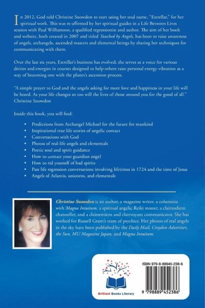 In 2012, God told Christine Snowdon to start using her soul name, "Estrellar," for her spiritual work. This was re-affirmed by her spiritual guides in a Life Between Lives session with Paul Williamson, a qualified regressionist and author. The aim of her book and website, both created in 2007 and titled Touched by Angels, has been to raise awareness of angels, archangels, ascended masters and elemental beings by sharing her techniques for communicating with them. Over the last six years, Estrellar's business has evolved; she serves as a voice for various deities and energies in courses, designed to help others raise personal energy vibration as a way of becoming one with the planet's ascension process. "A simple prayer to God and the Angels asking for more love and happiness in your life will be heard. As your life changes so too will the lives of those around you for the good of all."Christine Snowdon