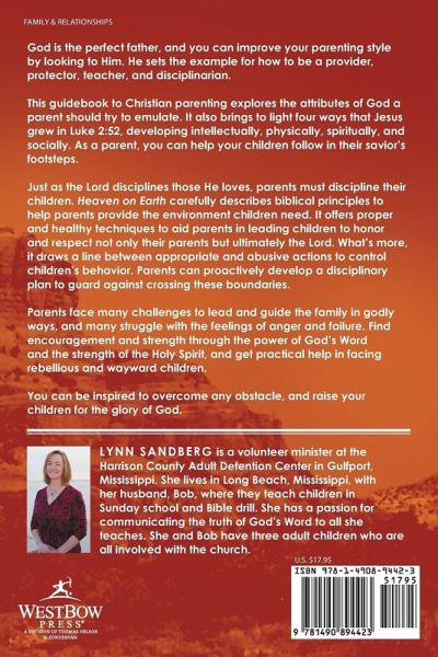 God is the perfect father, and you can improve your parenting style by looking to Him. He sets the example for how to be a provider, protector, teacher, and disciplinarian. This guidebook to Christian parenting explores the attributes of God a parent should try to emulate. It also brings to light four ways that Jesus grew in Luke 2:52, developing intellectually, physically, spiritually, and socially. As a parent, you can help your children follow in their savior's footsteps. Just as the Lord disciplines those He loves, parents must discipline their children. Heaven on Earth carefully describes biblical principles to help parents provide the environment children need. It offers proper and healthy techniques to aid parents in leading children to honor and respect not only their parents but ultimately the Lord. What's more, it draws a line between appropriate and abusive actions to control children's behavior. Parents can proactively develop a disciplinary plan to guard against crossing these boundaries. Parents face many challenges to lead and guide the family in godly ways, and many struggle with the feelings of anger and failure. Find encouragement and strength through the power of God's Word and the strength of the Holy Spirit, and get practical help in facing rebellious and wayward children. You can be inspired to overcome any obstacle, and raise your children for the glory of God.