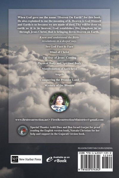 When God gave me name "Heaven On Earth" for this book, He also explained me the meaning of it. Heaven is God Himself and Earth is us because we are made of dust. Thy will be done on earth as it is in heaven. God establishes His kingdom in us through Jesus Christ, that is bringing down Heaven on Earth. Know and understand the bible revelations in a deeper way. See God face to face Mind of Christ The day of Jesus' coming Physical body and spiritual body Manifestation of Antichrist Angles Visible Hell Mystery of the woman