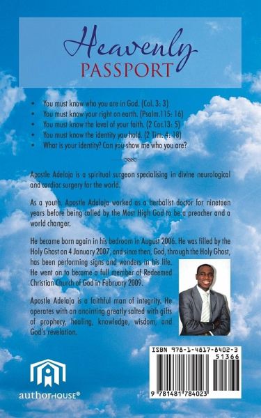 From author Apostle Olaonipekun Adetayo Adelaja, a spiritual surgeon specializing in divine neurological and cardiac surgery for the world, comes Heavenly Passport, an enlightening and spiritually uplifting book that shares wisdom, revelations and inspiration to everyone. Readers will learn more about who they are in God, what are their rights on earth, the level of their faith, the identity they hold, and so much more. It will inspire them to discover the meaning of life and the true purpose of their existence. It is a perfect guide in building an intimate relationship with God and in a journey through spiritual awakening.