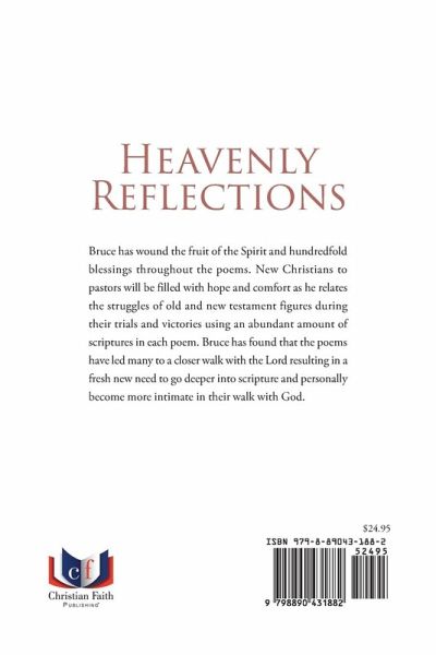 Bruce has wound the fruit of the Spirit and hundredfold blessings throughout the poems. New Christians to pastors will be filled with hope and comfort as he relates the struggles of old and new testament figures during their trials and victories using an abundant amount of scriptures in each poem. Bruce has found that the poems have led many to a closer walk with the Lord resulting in a fresh new need to go deeper into scripture and personally become more intimate in their walk with God.