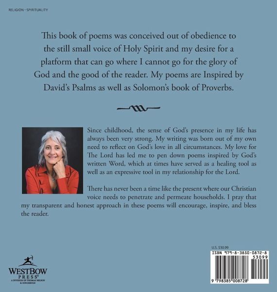 This book of poems was conceived out of obedience to the still small voice of Holy Spirit and my desire for a platform that can go where I cannot go for the glory of God and the good of the reader. My poems are Inspired by David's Psalms as well as Solomon's book of Proverbs.