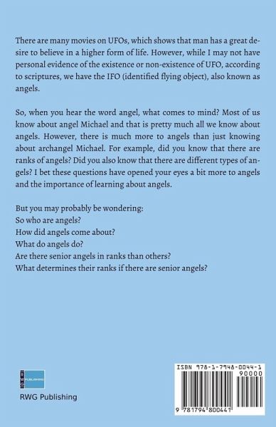 You Are A Click Away From Knowing Everything You Need To Know About Angels! There are many movies on UFOs, which shows that man has a great desire to believe in a higher form of life. However, while I may not have personal evidence of the existence or non-existence of UFO, according to scriptures, we have the IFO (identified flying object), also known as angels. So, when you hear the word angel, what comes to mind? Most of us know about angel Michael and that is pretty much all we know about angels. However, there is much more to angels than just knowing about archangel Michael. For example, did you know that there are ranks of angels? Did you also know that there are different types of angels? I bet these questions have opened your eyes a bit more to angels and the importance of learning about angels. But you may probably be wondering: So who are angels? How did angels come about? What do angels do? Are there senior angels in ranks than others? What determines their ranks if there are senior angels? If you have these and other related questions, this book is for you so keep reading, as it covers the ins and outs about angels in a language that you will understand. More precisely, here is a preview of what you will learn: * Some essential truths about angels * Why we should believe the existence of angels * The nature of angels * The different ranks of angels * And so much more I understand that matters dealing with spirituality can become a little complex making it challenging to comprehend important information. With this understanding, I have broken down complex information into bits of information that you can actually understand to make it easier for you to get valuable information from this book and to use it to improve your knowledge of the Bible. Would you love to know more about angels? Are you excited to learn about the different kinds of angels? If you are, Scroll up to the top of this page and Click Buy Now With 1-Click or Buy Now !