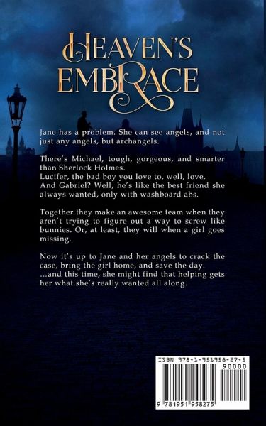 Jane has a problem. She can see angels, and not just any angels, but archangels. There's Michael, tough, gorgeous, and smarter than Sherlock Holmes. Lucifer, the bad boy you love to, well, love. And Gabriel? Well, he's like the best friend she always wanted, only with washboard abs. Together they make an awesome team when they aren't trying to figure out a way to screw like bunnies. Or, at least, they will when a girl goes missing. Now it's up to Jane and her angels to crack the case, bring the girl home, and save the day. ...and this time, she might find that helping gets her what she's really wanted all along.
