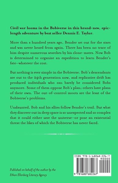 Civil war looms in the Bobiverse in this brand-new, epic-length adventure by best seller Dennis E. Taylor. More than a hundred years ago, Bender set out for the stars and was never heard from again. There has been no trace of him despite numerous searches by his clone-mates. Now Bob is determined to organize an expedition to learn Bender's fate-whatever the cost. But nothing is ever simple in the Bobiverse. Bob's descendants are out to the 24th generation now, and replicative drift has produced individuals who can barely be considered Bobs anymore. Some of them oppose Bob's plan; others have plans of their own. The out-of-control moots are the least of the Bobiverse's problems. Undaunted, Bob and his allies follow Bender's trail. But what they discover out in deep space is so unexpected and so complex that it could either save the universe-or pose an existential threat the likes of which the Bobiverse has never faced.