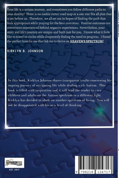 In this book, Kirklyn Johnson shares transparent truths concerning his ongoing journey of navigating life while dealing with autism. This book is filled with inspiration, and it will lead the reader to view children and adults on the Autism Spectrum in a different light. Kirklyn has decided to abide on another spectrum of living. You will not be disappointed with his new level of thinking.