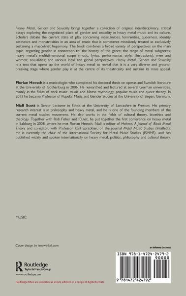 Heavy Metal, Gender and Sexuality brings together a collection of original, interdisciplinary, critical essays exploring the negotiated place of gender and sexuality in heavy metal music and its culture. Scholars debate the current state of play concerning masculinities, femininities, queerness, identity aesthetics and monstrosities in an area of music that is sometimes mistakenly treated as exclusively sustaining a masculinist hegemony. This is a text that opens up the world of heavy metal to reveal that it is a very diverse and ground-breaking stage where gender play is at the centre of its theatricality and sustains its mass appeal.
