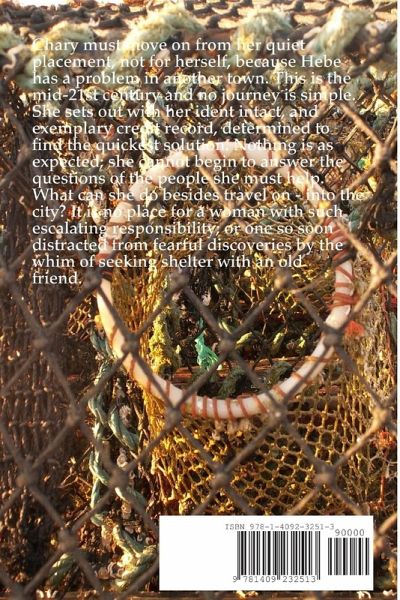 Chary must move on from her quiet placement, not for herself, because 'Hebe' has a problem in another town. This is the mid-21st century and no journey is simple. She sets out, with her ident intact, and exemplary credit record, determined to find the quickest solution. A story of hope.