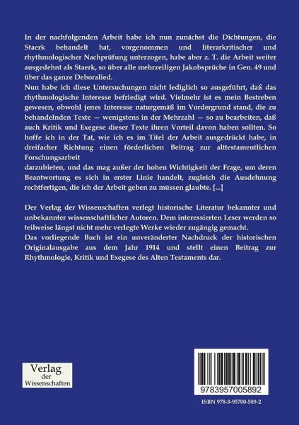 Das vorliegende Buch ist ein unveränderter Nachdruck der historischen Originalausgabe aus dem Jahr 1914 und stellt einen Beitrag zur Rhythmologie, Kritik und Exegese des Alten Testaments dar.