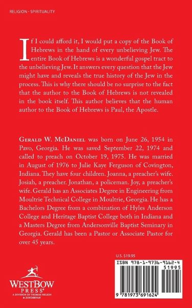 If I could afford it, I would put a copy of the Book of Hebrews in the hand of every unbelieving Jew. The entire Book of Hebrews is a wonderful gospel tract to the unbelieving Jew. It answers every question that the Jew might have and reveals the true history of the Jew in the process. This is why there should be no surprise to the fact that the author to the Book of Hebrews is not revealed in the book itself. This author believes that the human author to the Book of Hebrews is Paul, the Apostle.
