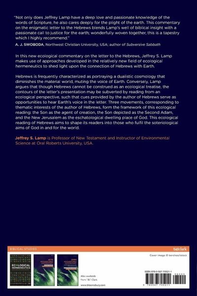 In this new ecological commentary on the letter to the Hebrews, Jeffrey S. Lamp makes use of approaches developed in the relatively new field of Ecological Hermeneutics to shed light upon the connection of Hebrews with Earth. Hebrews is frequently characterized as portraying a dualistic cosmology that diminishes the material world, muting the voice of Earth. Conversely, Lamp argues that though Hebrews cannot be construed as an ecological treatise, the contours of the letter's presentation may be subverted by reading from an ecological perspective, such that cues provided by the author of Hebrews serve as opportunities to hear Earth's voice in the letter. Three movements, corresponding to thematic interests of the author of Hebrews, form the framework of this ecological reading: the Son as the agent of creation, the Son depicted as the Second Adam, and the New Jerusalem as the eschatological dwelling place of God. This ecological reading of Hebrews aims to shape its readers into those who fulfill the soteriological aims of God in and for the world.