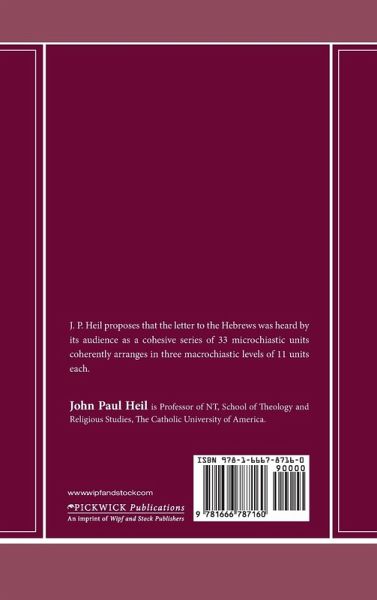 J.P. Heil proposes that the letter to the Hebrews was heard by its audience as a cohesive series of 33 microchiastic units coherently arranges in three macrochiastic levels of 11 units each.