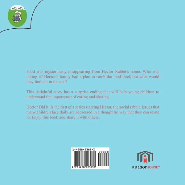 Food was mysteriously disappearing from Hector Rabbit's home. Who was taking it? Hector's family had a plan to catch the food thief, but what would they find out in the end? This delightful story has a surprise ending that will help young children to understand the importance of caring and sharing. Hector Did It! is the first of a series starring Hector, the social rabbit. Issues that many children face daily are addressed in a thoughtful way that they can relate to. Enjoy this book and share it with others.