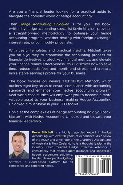 Are you a financial leader looking for a practical guide to navigate the complex world of hedge accounting? Then Hedge Accounting Unlocked is for you. This book, written by hedge accounting specialist, Kevin Mitchell, provides a straightforward methodology to optimise your hedge accounting program, whether dealing with foreign exchange, interest rate, or commodity price risks. With useful templates and practical insights, Mitchell takes you on a journey to streamline the accounting process for financial derivatives, protect key financial metrics, and elevate your finance team's effectiveness. You'll discover how to save time, reduce audit fees and month-end stress, and create a more stable earnings profile for your business. The book focuses on Kevin's 'HEDGEHOG Method', which outlines eight key areas to ensure compliance with accounting standards and enhance your hedge accounting program. Real-world case studies will empower you to become a more valuable asset to your business, making Hedge Accounting Unlocked a must-have in your CFO toolkit. Don't let the complexities of hedge accounting hold you back. Master it with Hedge Accounting Unlocked and elevate your financial leadership.