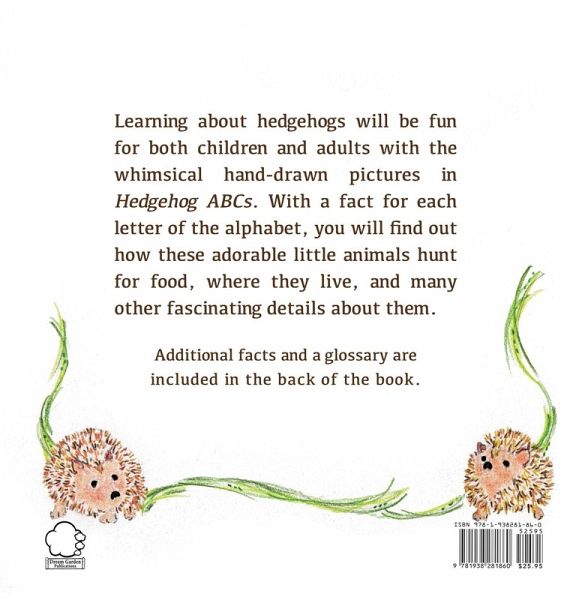 Learning about hedgehogs will be fun for both children and adults with the whimsical hand-drawn pictures in Hedgehog ABCs. With a fact for each letter of the alphabet, you will find out how these adorable little animals hunt for food, where they live, and many other fascinating details about them. Additional facts and a glossary are included in the back of the book.
