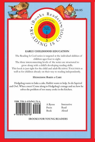 Hedgehog wants to bake a cake. Rabbit wants to help. So do Squirrel and Owl. What a mess! Come along to Hedgehog’s cottage and see how he solves the problem of too many cooks in the kitchen. ¿FROM AMERICA’S MOST TRUSTED NAME IN EARLY CHILDHOOD EDUCATION More than seventy years of educational research and innovative teaching have given the Bank Street College of Education the reputation as America’s most trusted name in early childhood education. Because no two children are exactly alike in their development, we have designed the Bank Street Ready-to-Read series in three levels to accommodate the individual stages of reading readiness of children ages four through eight. • Level 1: GETTING READY TO READ— (PRE-K to GRADE 1) Books are perfect for reading aloud with children who are getting ready to read or are just beginning to read words or phrases. • Level 2: READING TOGETHER—(GRADES 1 to 3) Books are written especiallly for children who are on their way to reading independently but who may need help. • Level 3: I CAN READ IT MYSELF—(GRADES 2 to 3) Books are designed for children able to read on their own. They also can be enjoyed as read-alouds.