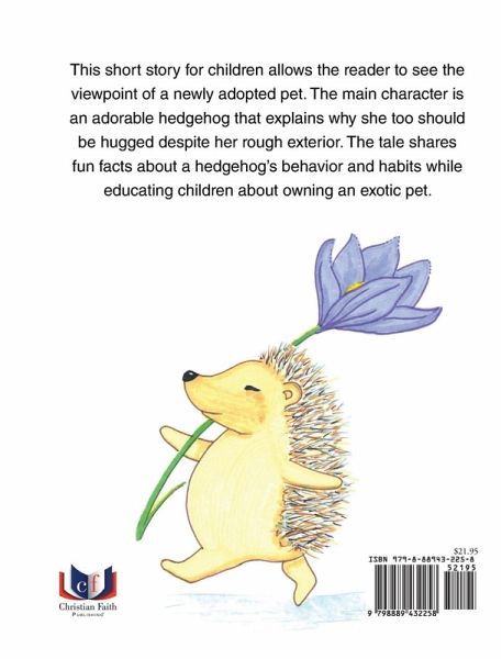This short story for children allows the reader to see the viewpoint of a newly adopted pet. The main character is an adorable hedgehog that explains why she too should be hugged despite her rough exterior. The tale shares fun facts about a hedgehog's behavior and habits while educating children about owning an exotic pet.