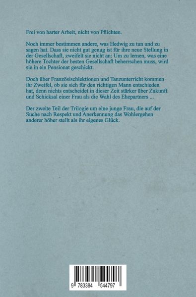 Frei von harter Arbeit, nicht von Pflichten.Noch immer bestimmen andere, was Hedwig zu tun und zu sagen hat. Dass sie nicht gut genug ist für ihre neue Stellung in der Gesellschaft, zweifelt sie nicht an: Um zu lernen, was eine höhere Tochter der besten Gesellschaft beherrschen muss, wird sie in ein Pensionat geschickt.Doch über Französischlektionen und Tanzunterricht kommen ihr Zweifel, ob sie sich für den richtigen Mann entschieden hat, denn nichts entscheidet in dieser Zeit stärker über Zukunft und Schicksal einer Frau als die Wahl des Ehepartners ...Der zweite Teil der Trilogie um eine junge Frau, die auf der Suche nach Respekt und Anerkennung das Wohlergehen anderer höher stellt als ihr eigenes Glück.