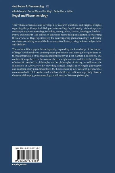 This volume articulates and develops new research questions and original insights regarding the philosophical dialogue between Hegel's philosophy, his heritage, and contemporary phenomenology, including, among others, Husserl, Heidegger, Merleau-Ponty, and Ricoeur. The collection discusses methodological questions concerning the relevance of Hegel's philosophy for contemporary phenomenology, addressing core issues revolving around the key concepts of history, being, science, subjectivity, and dialectic.