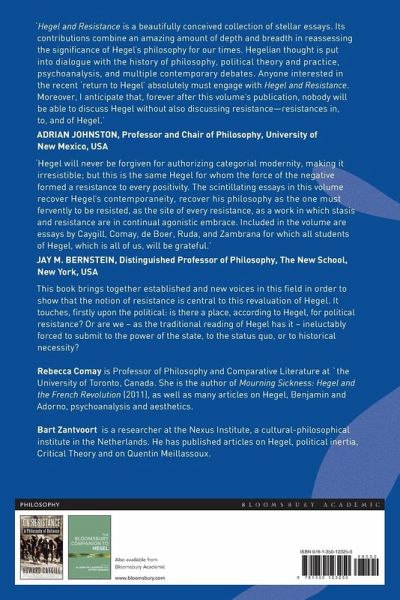 The concept of resistance has always been central to the reception of Hegel's philosophy. The prevalent image of Hegel's system, which continues to influence the scholarship to this day, is that of an absolutist, monist metaphysics which overcomes all resistance, sublating or assimilating all differences into a single organic 'Whole'. For that reason, the reception of Hegel has always been marked by the question of how to resist Hegel: how to think that which remains outside of or other to the totalizing system of dialectics. In recent years the work of scholars such as Catherine Malabou, Slavoj Zizek, Rebecca Comay and Frank Ruda has brought considerable nuance to this debate. A new reading of Hegel has emerged which challenges the idea that there is no place for difference, otherness or resistance in Hegel, both by refusing to reduce Hegel's complex philosophy to a straightforward systematic narrative and by highlighting particular moments within Hegel's philosophy which seem to counteract the traditional understanding of dialectics. This book brings together established and new voices in this field in order to show that the notion of resistance is central to this revaluation of Hegel.